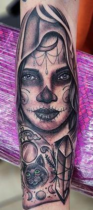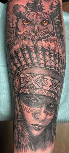 James loves to do traditional art and tattoos, but does just about anything! James loves a challenge, which is why he is now focusing on the realism style of tattooing. He is a huge part of this team and through loyalty and being a team player he will be here forever!!! Or as he says, "We're stuck with him"!!!