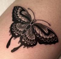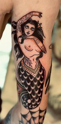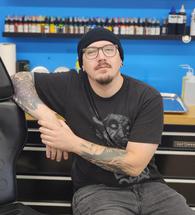 This is Jamie! Jamie has been tattooing for 6 years. He did his apprenticeship and hit the road running! He is the youngest of the tattooers here, he be young but he be mighty! A force to be reckoned with in respect to the art he puts out, TOP NOTCH! He loves doing the style he most enjoys executing, which is traditional and neotraditional, but will execute anything clean and willing to do it all! He is also one of the guys to go to for Anime and cartoon designs!